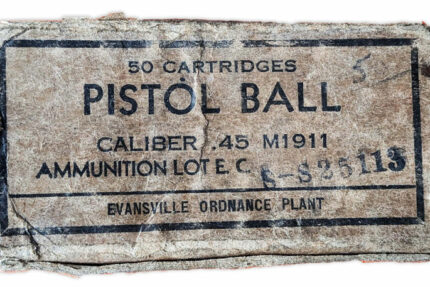 25 CARTUCCE PER PISTOLA AUTOMATICA BERETTACalibro 9 corto Modello 1934Ballistite in dischi S. A. Dinamite NobelSoc. An. GIULIO FIOCCHI – LECCO