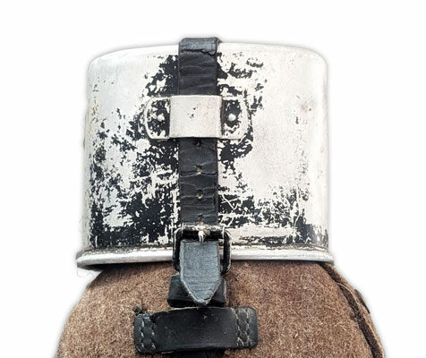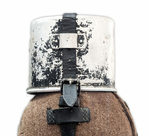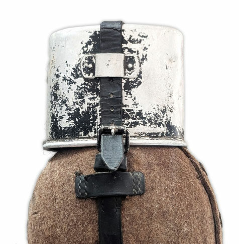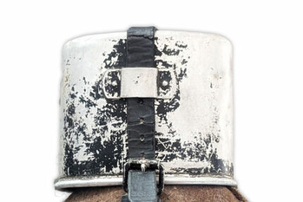Ce quart en aluminium est conçu pour être fixé à la gourde (Feldflasche). La référence du fabricant ainsi que la date de production sont gravées entre les deux anses. La sangle destinée à maintenir le quart en place passe par un pontet prévu à cet […]