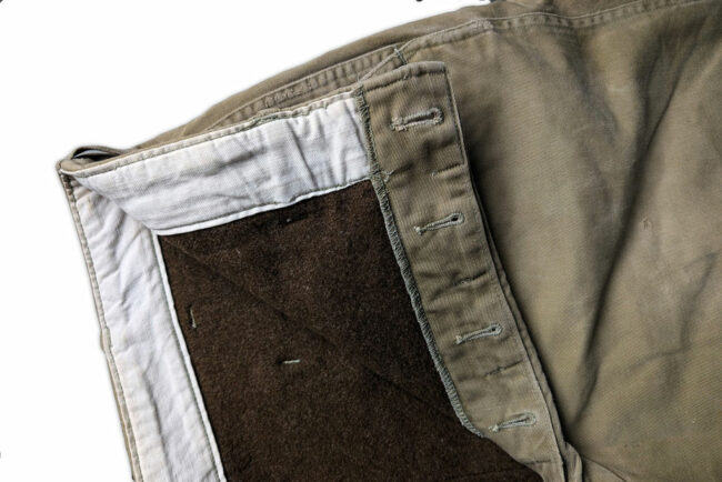 La gourde est composée d’un bidon (Feldflaschen) et d’un quart ( Trinbecher). Le bidon est en aluminium, comme sur ce modèle du début de la guerre. Renfort à l’arrière et sur le collier, présent uniquement sur les modèles de première époque. Le bidon est entouré […]