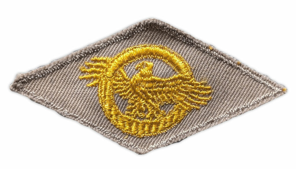 Cet insigne est communément appelé « Ruptured Duck », du fait de son dessin. Il a été distribué suivant 4 versions, afin de pouvoir équiper l’ensemble des vêtements de sortie, de tous les membres de l’armée.