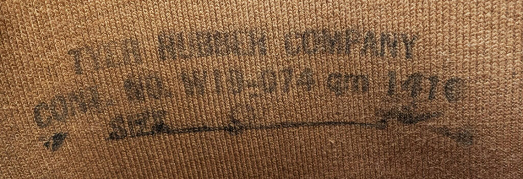 Marquage à l’intérieur de la botte indiquant le fabricant, le numéro de contrat et la taille.