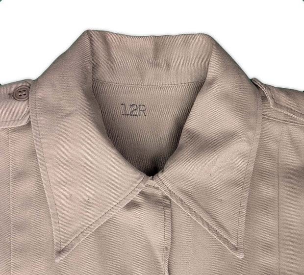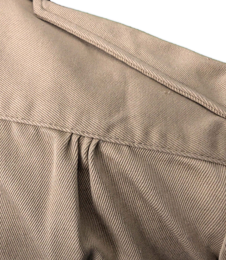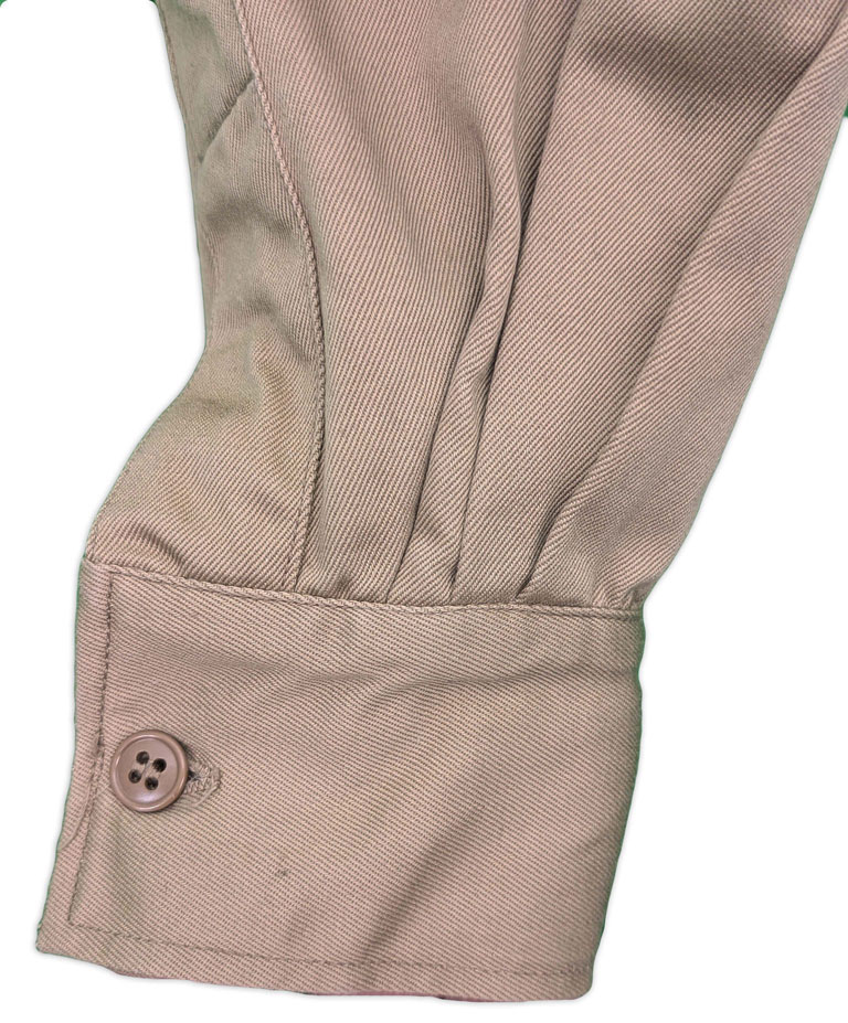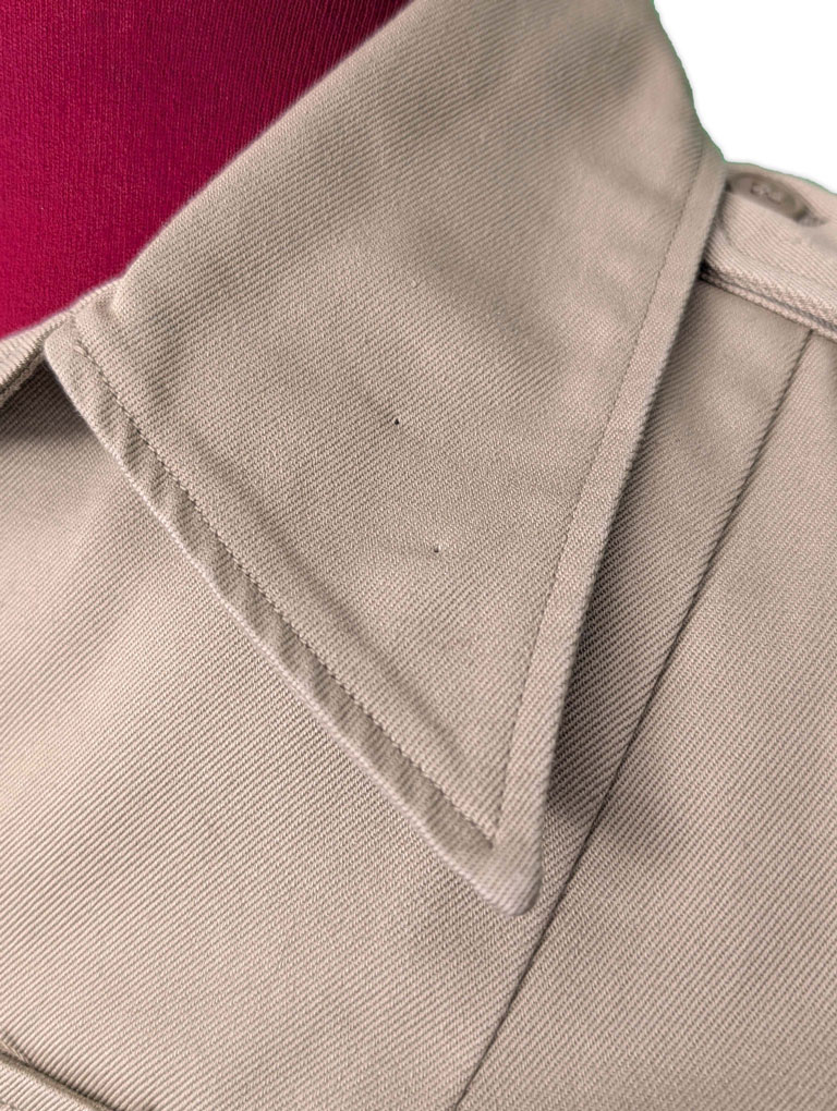 Réalisé en sergé de coton kaki, un textile à la fois résistant et respirant, il était spécifiquement adapté aux conditions de terrain rencontrées sous climat tropical.