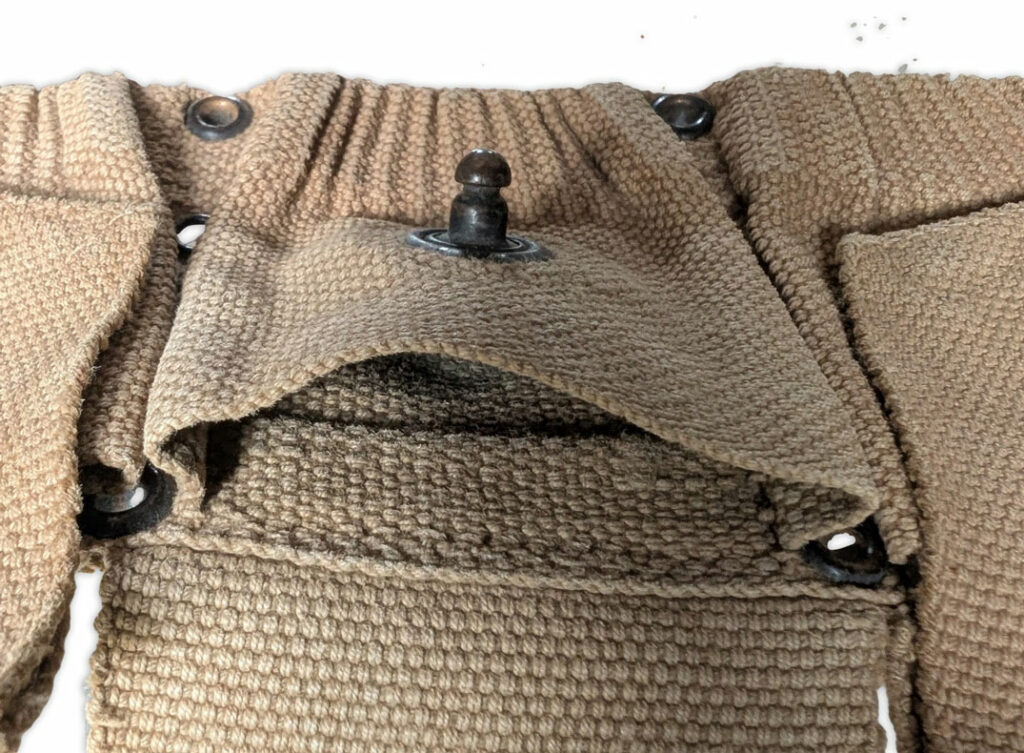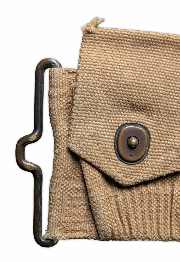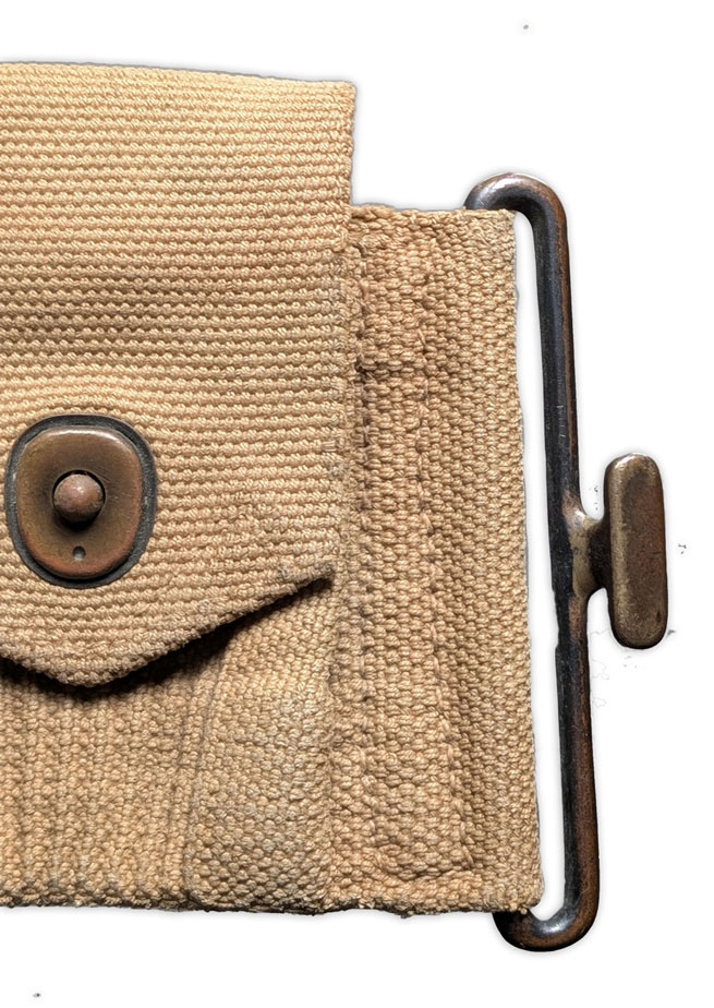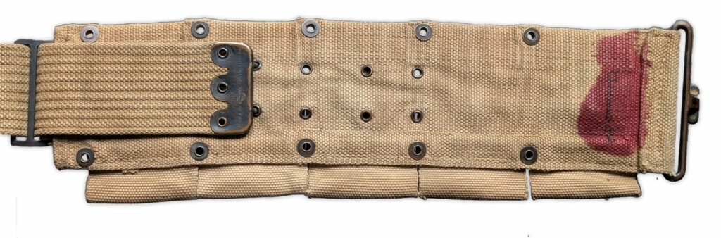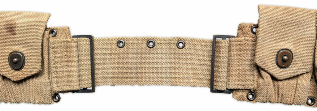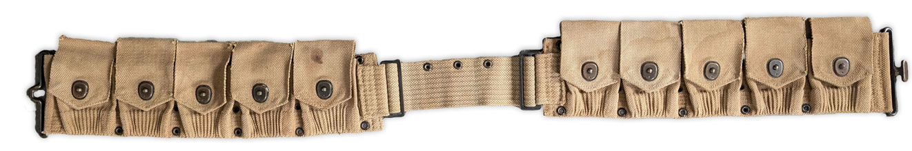 Conçus à l’origine pour les lames-chargeurs du fusil Springfield M-1903, les ceinturons M-1917 furent attribués aux troupes à pied. Fabriqués en toile de coton kaki sable, ils se distinguaient par leurs dix logements, permettant le transport et l’accès immédiat aux chargeurs de cinq cartouches de calibre .30.