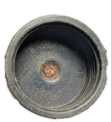 L’intérieur du bouchon possède des marquages réalisés lors de son moulage. On peut y retrouver le fabricant et des chiffres qui correspondent au numéro de moule.